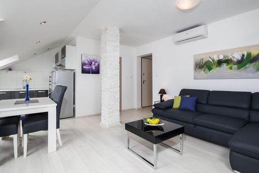 Dies ist eine schöne, neue Wohnung im Dachgeschoss des neuen Hauses, positioniert in sehr guten Lage in Bol. Auf der Südseite haben Sie einen weiten Blick auf das Meer und auf der Nordseite Blick auf den Berg Vidova Gora. Das Meer ist 100 Meter entfernt und der berühmte Strand Zlatni Ra...