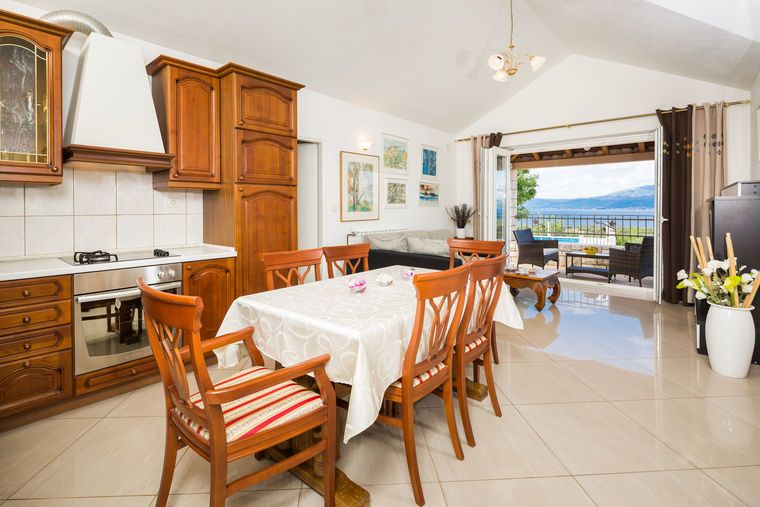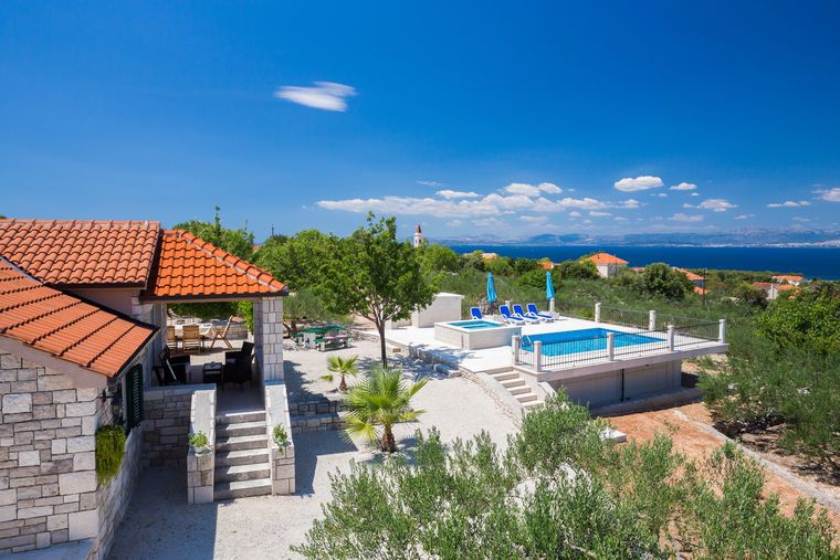 Holiday house with pool 4 *, located on 12000m2 fenced private property with olives. The house offers privacy, but not far from the town center.Easy access and parking with sun protection. It consists of two stone houses, one main and studio apartments within the main house.Pool has a sun...